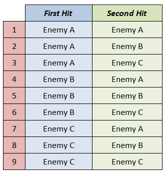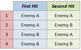 If we name our enemies: Enemy A and Enemy B, these are the possible outcomes: