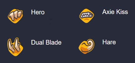 { Hero, Axie Kiss, Dual Blade, Hare }
