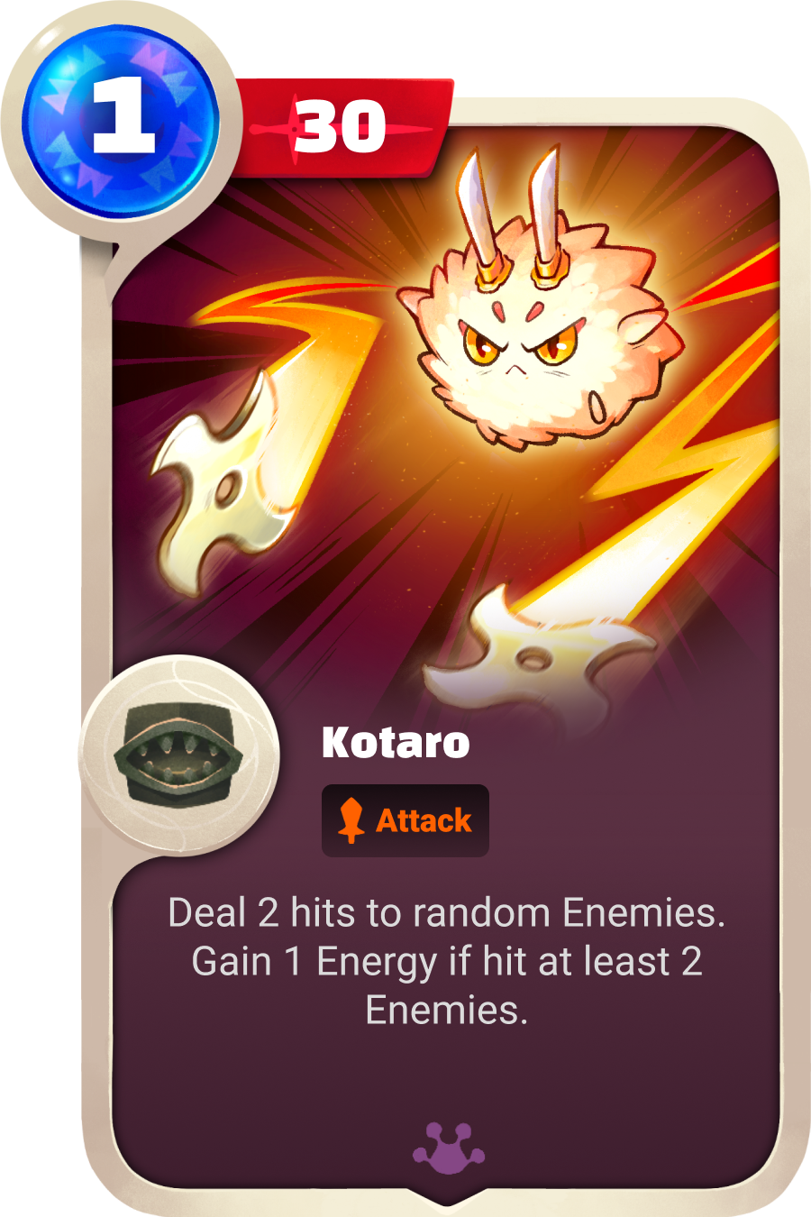 Randomness has always been part of Axie Infinity's core gameplay. From V2 to Origin, the heat of the battle lives on with some element of randomness. Although the crit system, which is one of the main sources of randomness in the game, will have to say goodbye in Axie Infinity: Origin. New sources of randomness emerge. One of them is the Kotaro card: